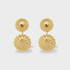Impactantes y femeninos. Estos aretes de chapa de oro de 18k están formados por dos discos en relieve con diseño floral radial, creando un efecto visual que recuerda a un sol en flor. Su acabado pulido resalta los volúmenes y juega con la luz de forma elegante. Una pieza llamativa que transforma cualquier look con solo un detalle