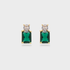 Elegantes aretes de chapa de oro con un diseño de doble piedra: circones transparentes que aportan brillo y un cautivador rectángulo verde que evoca la intensidad de una esmeralda. Una pieza versátil para elevar cualquier look, desde lo casual hasta lo más sofisticado.
