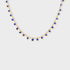 Este collar de chapa de oro combina ligereza y color con pequeñas shakiras azul marino que cuelgan delicadamente a lo largo de la cadena. Perfecto para looks de verano, climas cálidos o para darle un toque vibrante y relajado a tu outfit diario.