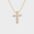 Cadena tipo bolitas con dije en forma de cruz, adornado con circones corte ovalado que reflejan la luz con un brillo elegante y delicado. Su baño en chapa de oro realza el diseño clásico con un toque moderno, ideal para elevar cualquier look con sutileza y estilo. Perfecto para usar solo o combinar con otras cadenas finas.