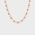 Este collar de chapa de oro es ligero, divertido y lleno de movimiento, con pequeñas shakiras rojas y doradas que se balancean delicadamente al ritmo de tus pasos. Ideal para looks frescos, escapadas de verano o darle un twist vibrante a tu outfit diario.