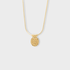 Material: Chapa de oro 18K. Medidas: Cadena 45 cm de largo. Dije de 1.2 cm. Color: Dorado. Características: Cadena tipo serpiente.