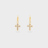 Aretes tipo huggie elaborados en chapa de oro con dije de cruz decorada con circones brillantes. Una pieza clásica con un toque moderno que combina elegancia y versatilidad. Perfectos para usar de día o de noche, solos o en combinación con otros aretes.