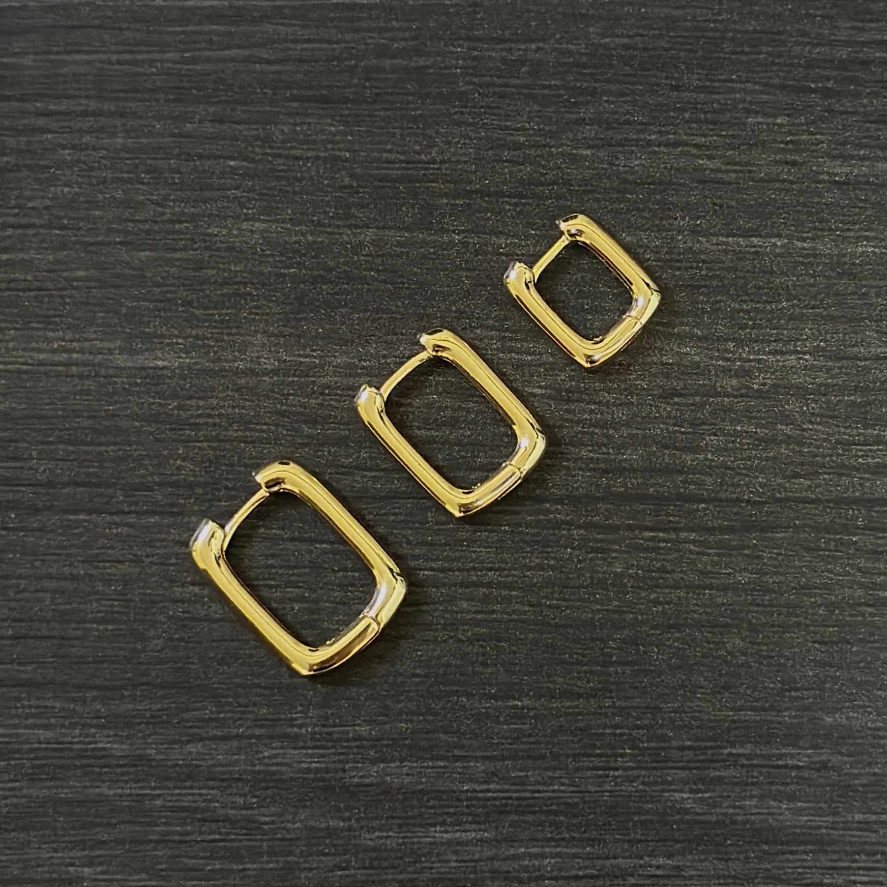 Huggies con forma rectangular y acabado pulido, un diseño contemporáneo que combina minimalismo y versatilidad. Su silueta geométrica los hace ideales para llevar solos o acompañar con otros aretes en distintas perforaciones. Elaborados en chapa de oro, son una opción moderna y atemporal para el uso diario o para complementar looks más sofisticados.