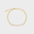 Esta pulsera de chapa de oro destaca por su frente de circonias en corte redondo que atrapan la luz con cada movimiento, contrastando con una cadena de eslabones alargados que aporta estructura y equilibrio. Ideal para elevar tu look sin esfuerzo.