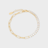 Esta pulsera de chapa de oro une dos estilos icónicos: eslabones tipo paperclip y una línea de circonias brillantes en corte redondo. El contraste entre la geometría dorada y el destello de las piedras crea una pieza moderna, versátil y perfecta para destacar.
